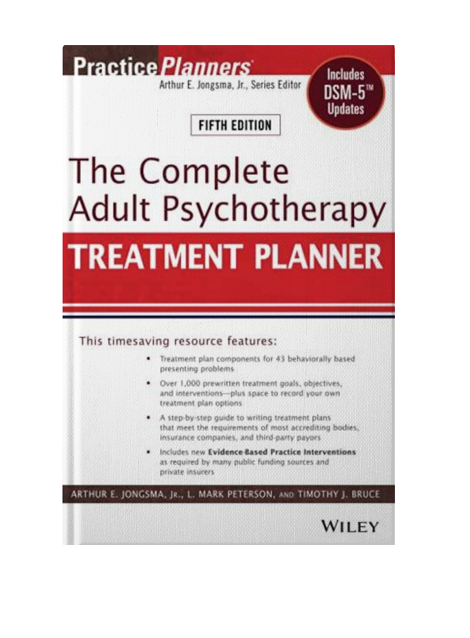 The Complete Adult Psychotherapy Treatment Planner, Fifth Edition provides all the elements necessary to quickly and easily develop formal treatment plans that satisfy the demands of HMOs, managed care companies, third-party payors, and state and federal agencies.
